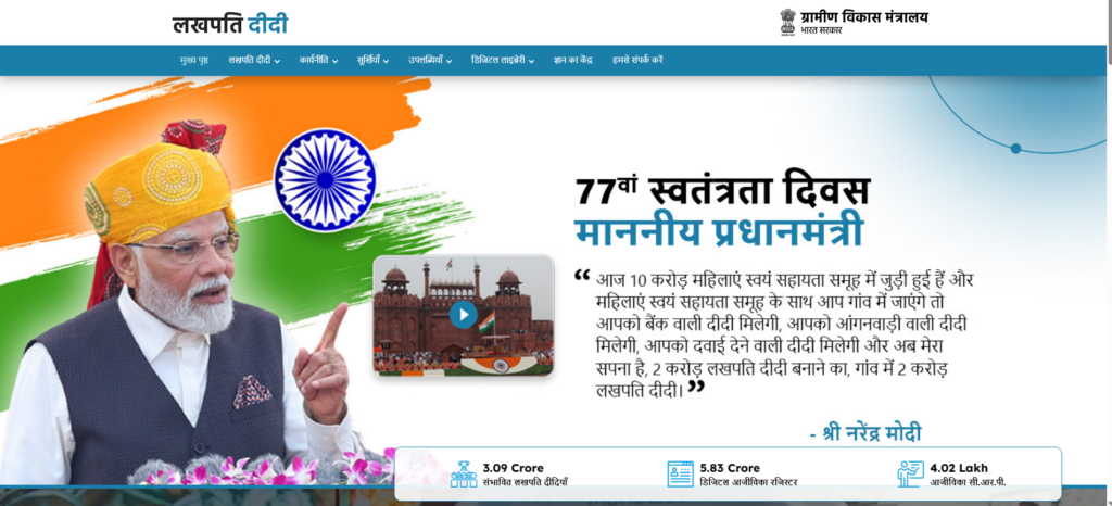 - होम – पेज पर बाद आपको ” Lakhpati Didi Yojana – Apply Now ” का विकल्प मिलेगा जिस पर आपको क्लिक करना होगा,