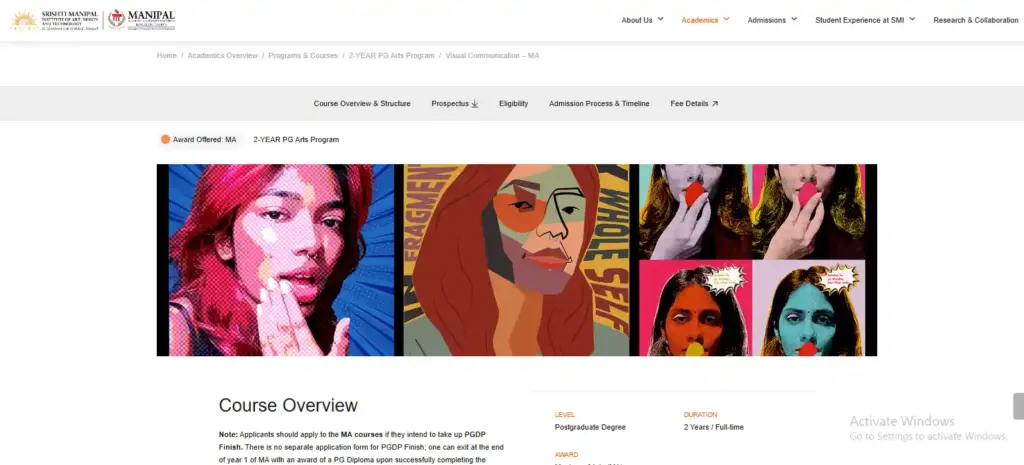 लोकप्रिय विशेषज्ञताएं (Specializations): MA in Visual Communication में विशेषज्ञताएं जैसे Visual Media, Graphic Design, Animation, और Advertising उपलब्ध हैं।