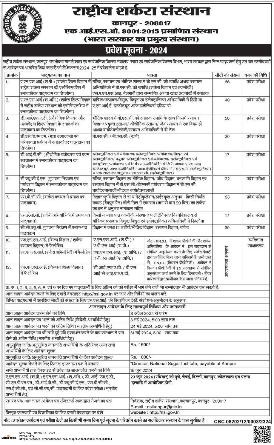 | Name of the Article | National Sugar Institute Recruitment 2024 |