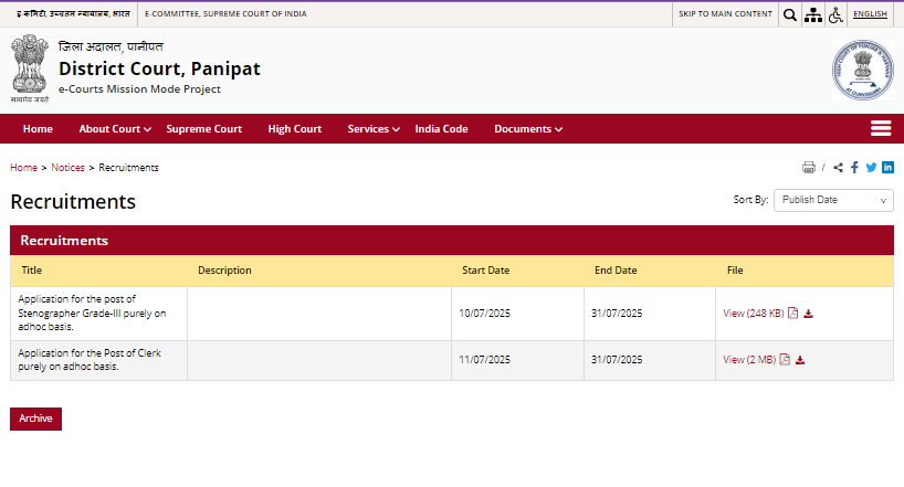 | Official Career Page of District Court, Panipat | Visit Now |