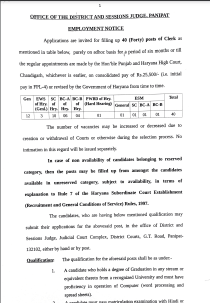 Panipat Court Clerk Qualification Criteria