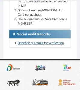 - यहां पर “H. Social Audit Report” के क्षेत्र में दिए गए “Beneficiary Details For Verification” विकल्प पर क्लिक कर देना होगा.