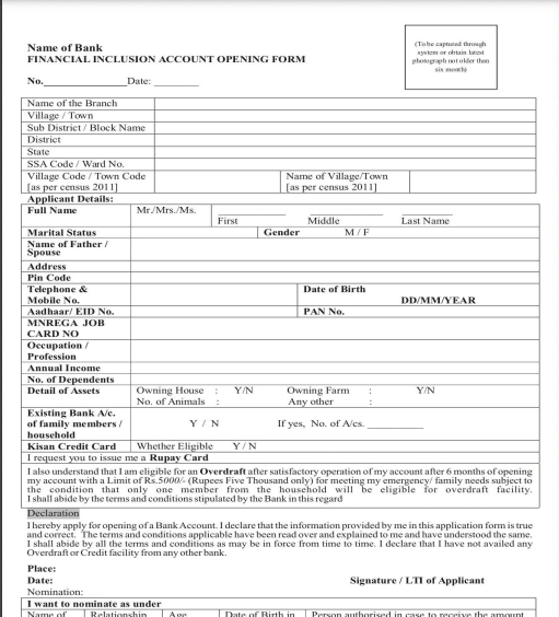 - यहां पर आने के बाद आपको Pradhan Mantri Jan Dhan Scheme 2025 – Account Opening Form प्राप्त करना होगा जो कि, इस प्रकार का होगा –