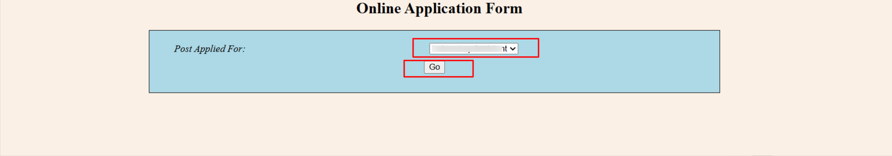 - इसके बाद फिर से आआपके सामने कुछ इस तरह का पेज खुलकर आएगा यहाँ पर आपको एक ड्रॉप डाउनमेनू देखने को मिलेगा आपको इस मेनू में से उस पद को सिलैक्ट करना है जिसके लिए आप अपना आवेदन करना चाहते हैं और फिर Go के ऑप्शन पर क्लिक करना है।