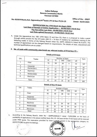 | Direct Link To Download Official Advertisement of Railway BLW Apprentice Recruitment 2025 | 47th बैच एक्ट अप्रेंटिस 1961 कि अधिसूचना |