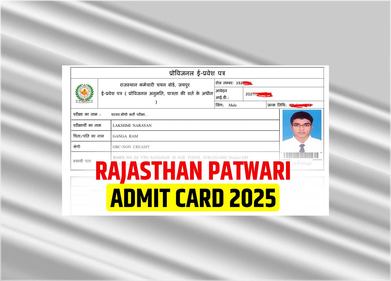 | Rajasthan Patwari Admit Card 2025 को जारी किया जाएगा | जल्द ही सूचित किया जाएगा |