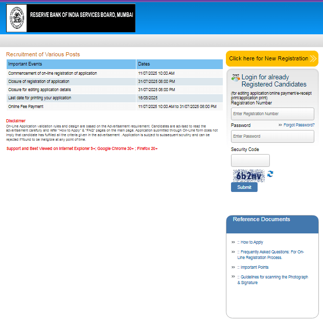 Step 1 – New Registration Before Online Apply In RBI Officer Grade A / B Recruitment 2025