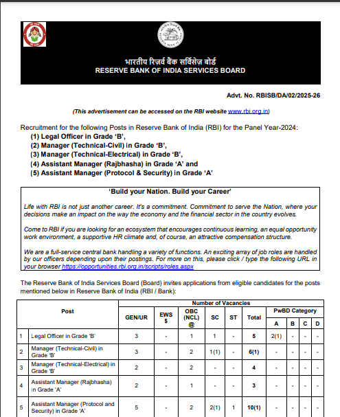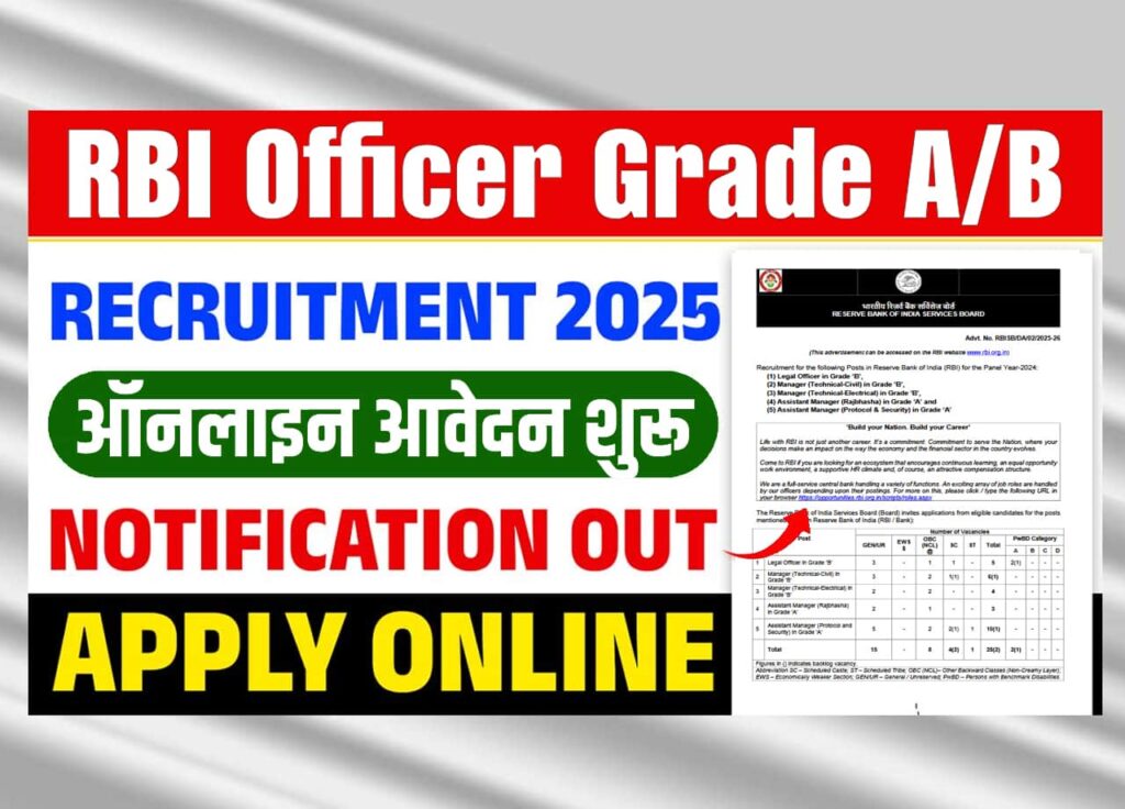 रिजर्व बैंक ऑफ इंडिया ( RBI ) ने निकाली ऑफिसर्स ग्रेड ए और बी की नई भर्ती, जाने क्या है पूरी भर्ती, आवेदन प्रक्रिया और अप्लाई करने की लास्ट डेट – RBI Officer Grade A / B Recruitment 2025?