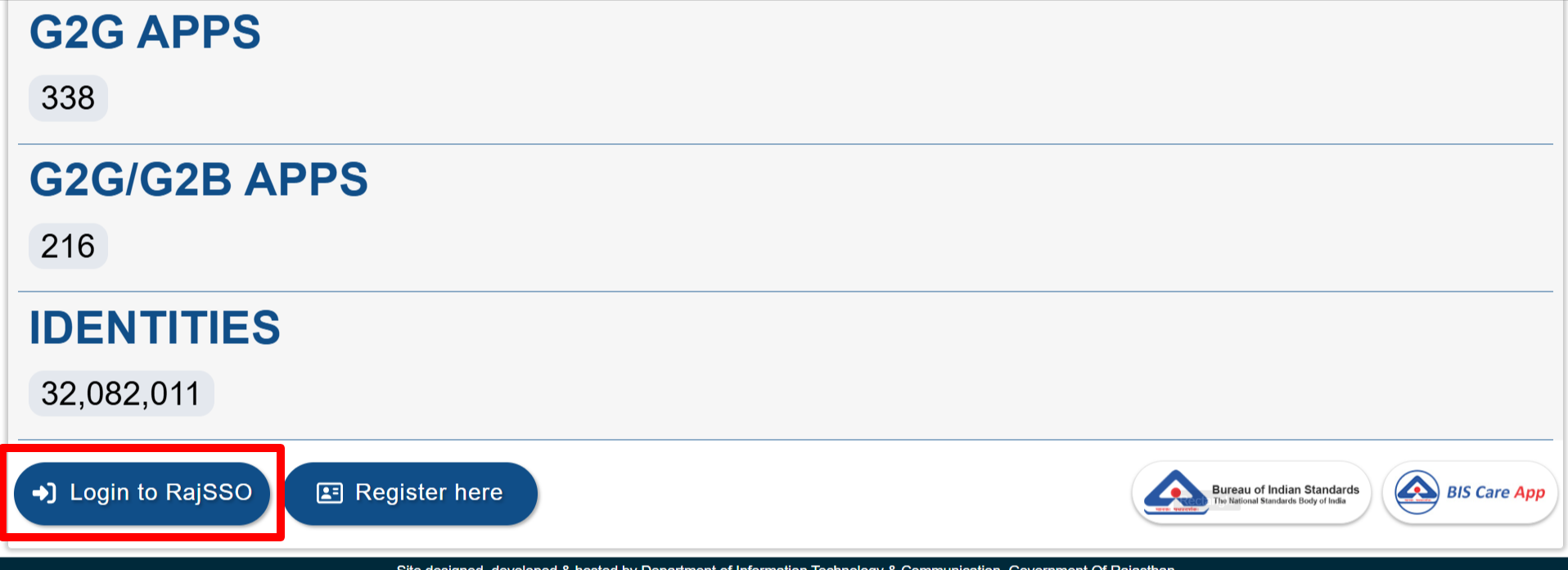 - आपको यहाँ पर Login To RajSSO के ऑप्शन पर क्लिक करना है।