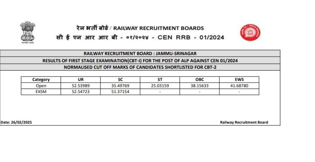 | RRB Jammu Srinagar Result | Result | Cutoff |