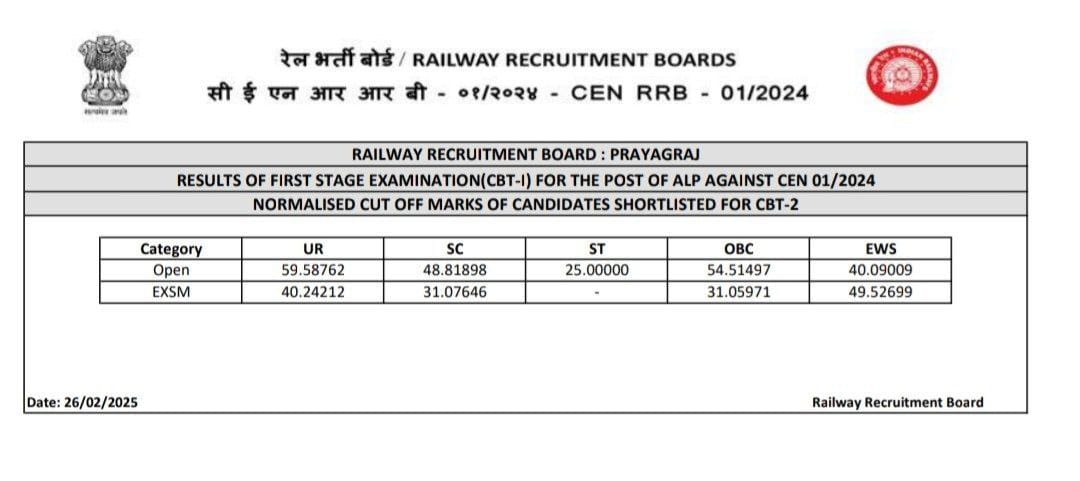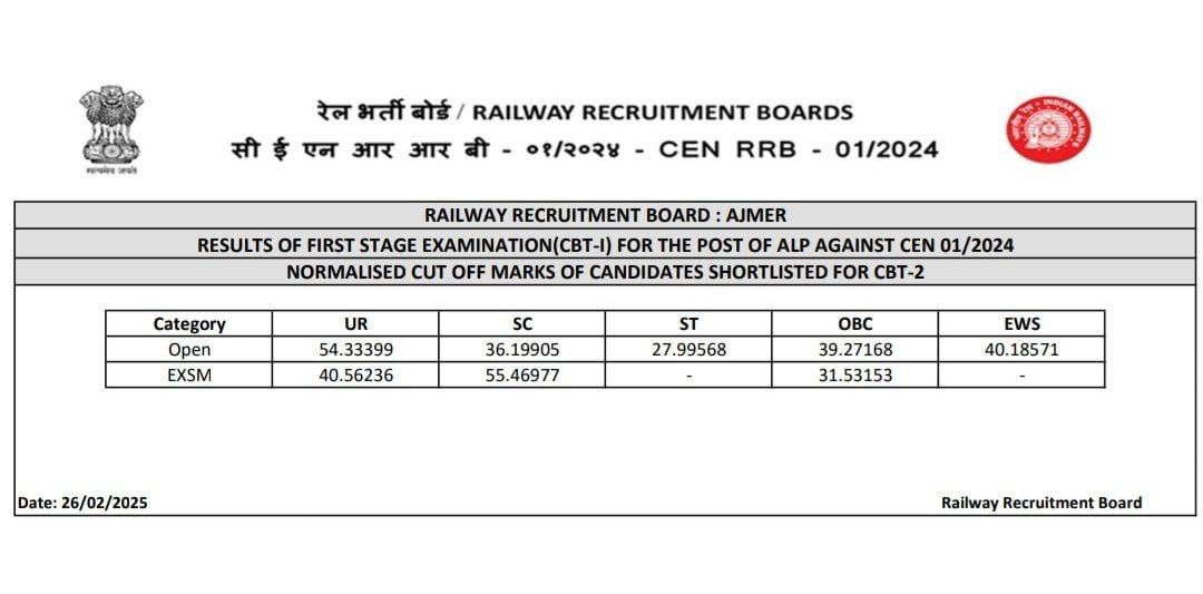 आरआरबी एएलपी 2025 का रिजल्ट जारी, जाने क्या होगा क्वालिफाईंग मार्क्स औक कितना चाहिए कट ऑफ, जाने क्या है पूरी रिपोर्ट – RRB ALP Result 2025?