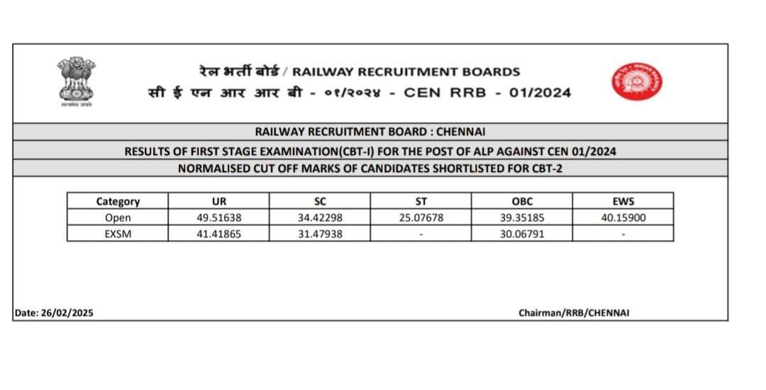 | ALP CBT 1 Result Chennai Zone List | Result | Cutoff |