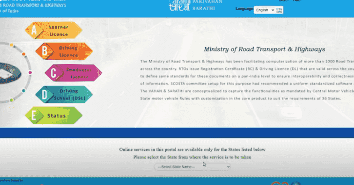 - होम – पेज पर नीचे की तरफ आने पर आपको Driver / Learners License के विकल्प पर क्लिक करना होगा,