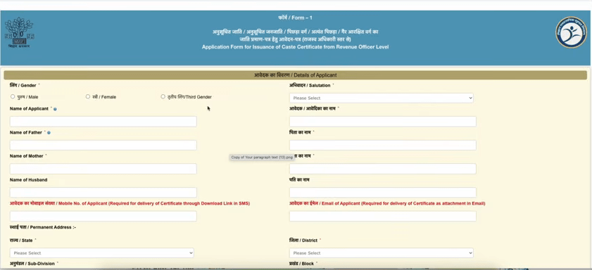 Step By Step Online Process of Shadishuda Mahila Ka Jati Praman Patra Kaise Banaen?