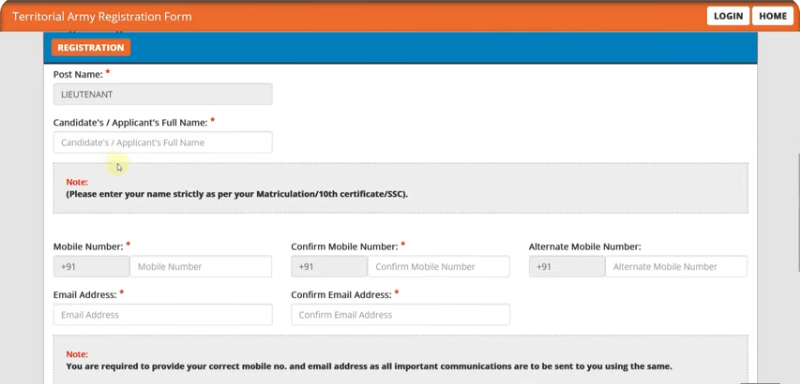 स्टेप 2 – पोर्टल मे लॉगिन करके Territorial Army Officer Recruitment 2025 मे ऑनलाइन अप्लाई करें
