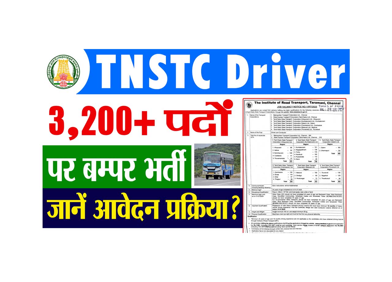 TNSTC ने निकाली ड्राईवर के 3,200+ पदोें पर बम्पर भर्ती, जाने क्या है पूरी भर्ती और आवेदन प्रक्रिया सहित अप्लाई करने की लास्ट डेट – TNSTC Driver Recruitment 2025?