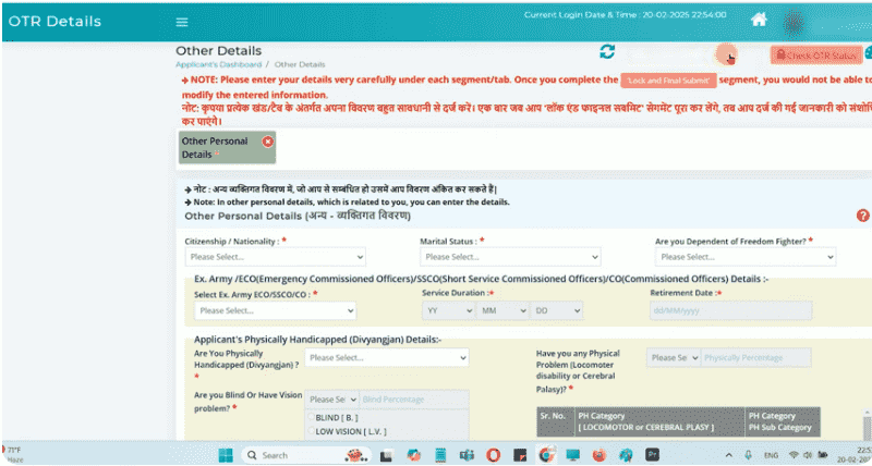 - अन्त मे, आपका OTR Lock होने के साथ सबमिट हो जाएगा।