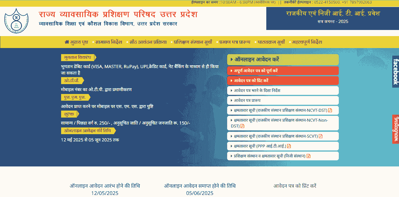 दूसरी तरफ हम, आपको बता देना चाहते है कि, Uttar Pradesh ITI Admission 2025 हेतु अप्लाई करने के लिए प्रत्येक विद्यार्थी 12 मई, 2025 से लेकर आगामी 05 जून, 2025 ( दाखिला हेतु अप्लाई करने की लास्ट डेट ) तक अप्लाई कर सकते है तथा
