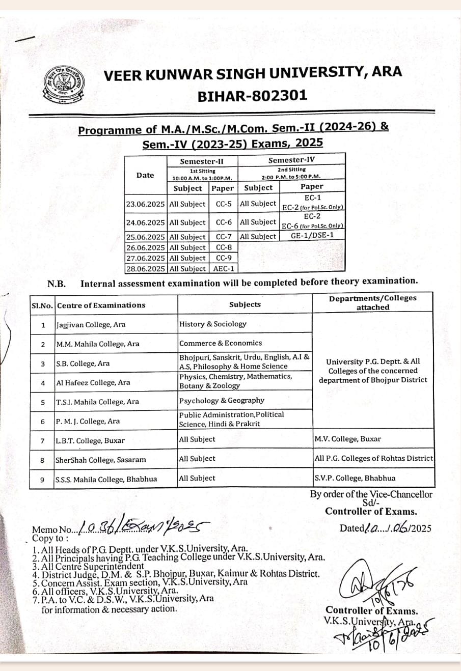 | VKSU PG Semester-2 Exam Date 2024-26 (Start) | 23 June 2025 |